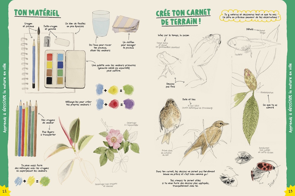 Un cahier créatif : Comment dessiner un pigeon ou un pissenlit ? Quel matériel utilisé ? L’artiste Valentine Plessy livre ses conseils aux enfants pour apprendre le dessin naturaliste.