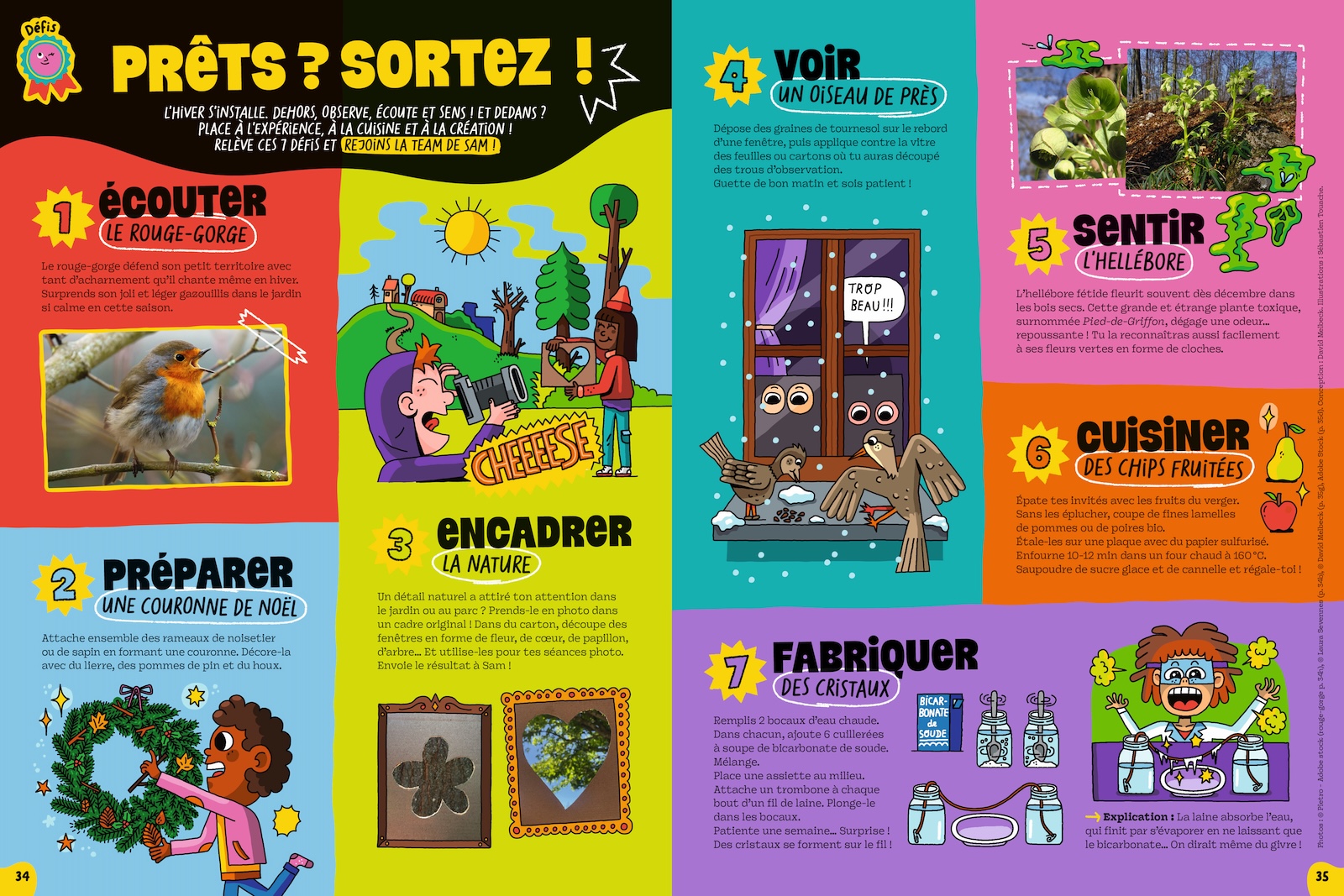 Écouter le rouge-gorge, préparer une couronne de Noël, voir un oiseau de près, fabriquer des cristaux… Sept défis pour encourager les expériences avec le vivant. Et aussi, un « tuto » pas-à-pas pour créer un sapin de Noël très nature.