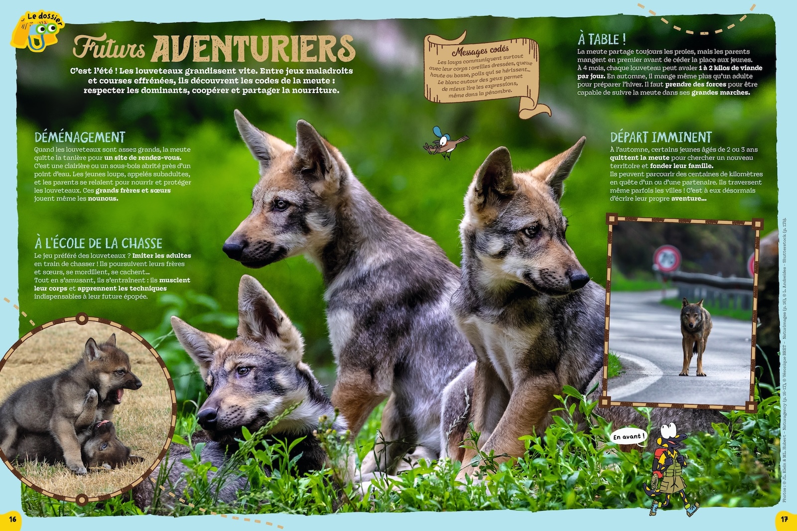 Un vent glacial souffle sur les montagnes enneigées. Il faut pourtant avancer encore, et même le ventre vide. Pour un loup, survivre n’est pas facile. Il doit parcourir des kilomètres pour trouver une proie ou un territoire. Heureusement, il peut compter sur sa meute. Cette famille soudée traverse les saisons comme une aventure. En avant !